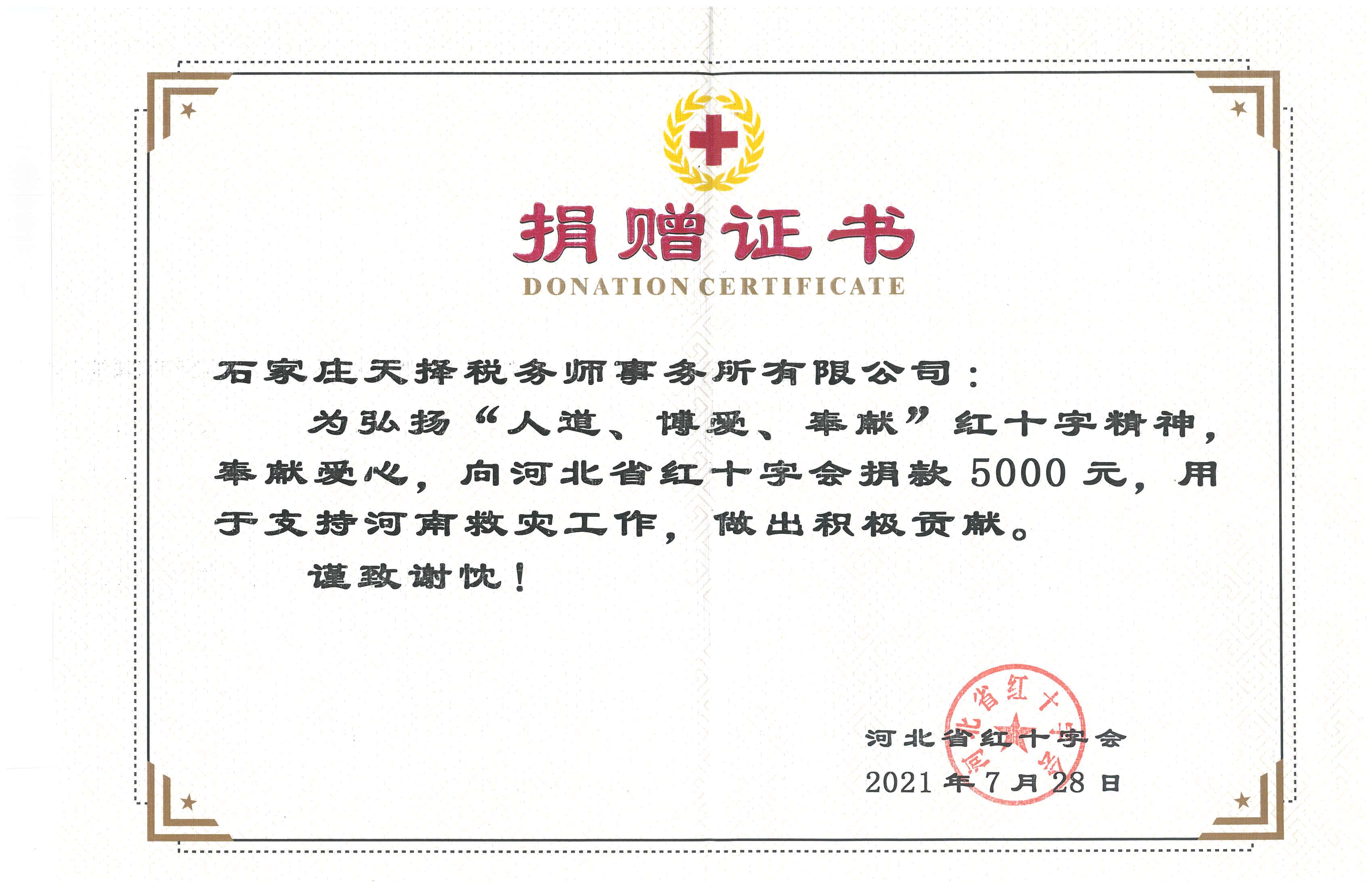 近日,河南省多地出現(xiàn)持續(xù)性、特大暴雨天氣,強降雨給鄭州、新鄉(xiāng)等地區(qū)造成了嚴重的財產(chǎn)損失。洪水無情,人間有愛,一方有難,八方支援,石家莊天擇稅務(wù)師事務(wù)所積極響應(yīng)號召,向鄭州等地災(zāi)區(qū)捐款,用自己的愛心為災(zāi)區(qū)貢獻力量,以實際行動踐行初心使命。