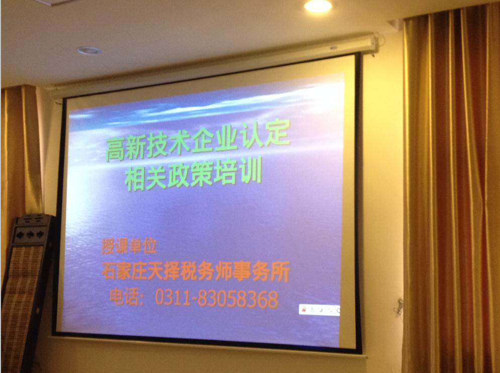 2015年1月14日,成安縣科技局召開了高新技術(shù)企業(yè)認(rèn)定培訓(xùn)會,培訓(xùn)會由我公司張勤總經(jīng)理親臨現(xiàn)場授課,針對企業(yè)如何申報(bào)高企、高企優(yōu)惠政策、企業(yè)研發(fā)費(fèi)用加計(jì)扣除等方面進(jìn)行了詳細(xì)的講解。會上免費(fèi)發(fā)放了天擇稅務(wù)師事務(wù)所印制的“高新技術(shù)企業(yè)認(rèn)定方略”、“稅收政策輯要”等資料。