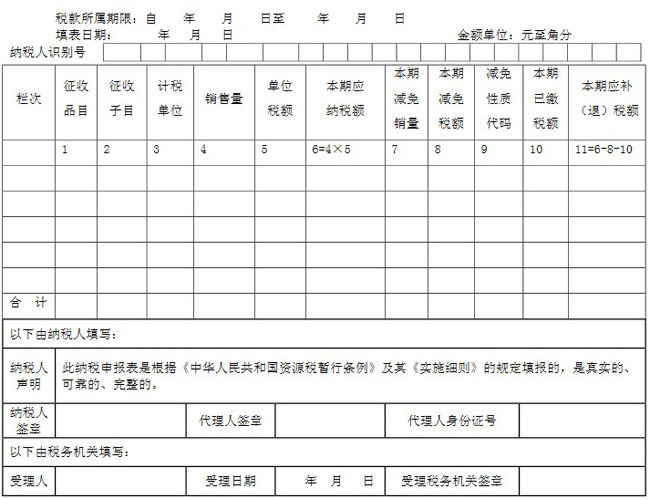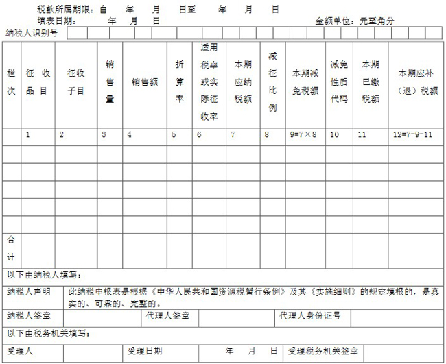 1.本表適用于資源稅納稅人填報(bào)(國家稅務(wù)總局另有規(guī)定者除外)。
