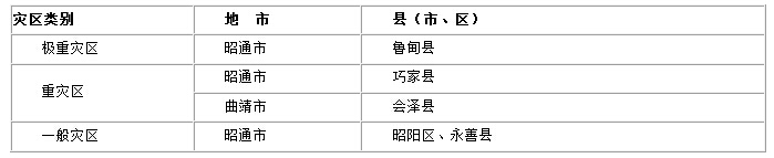 根據(jù)《云南魯?shù)?.5級地震災(zāi)害損失評估報告》(民函〔2014〕269號)的規(guī)定,本通知所稱“受災(zāi)嚴重地區(qū)”是指極重災(zāi)區(qū)和重災(zāi)區(qū),“受災(zāi)地區(qū)”是指極重災(zāi)區(qū)、重災(zāi)區(qū)和一般災(zāi)區(qū)。具體受災(zāi)地區(qū)范圍見附件。